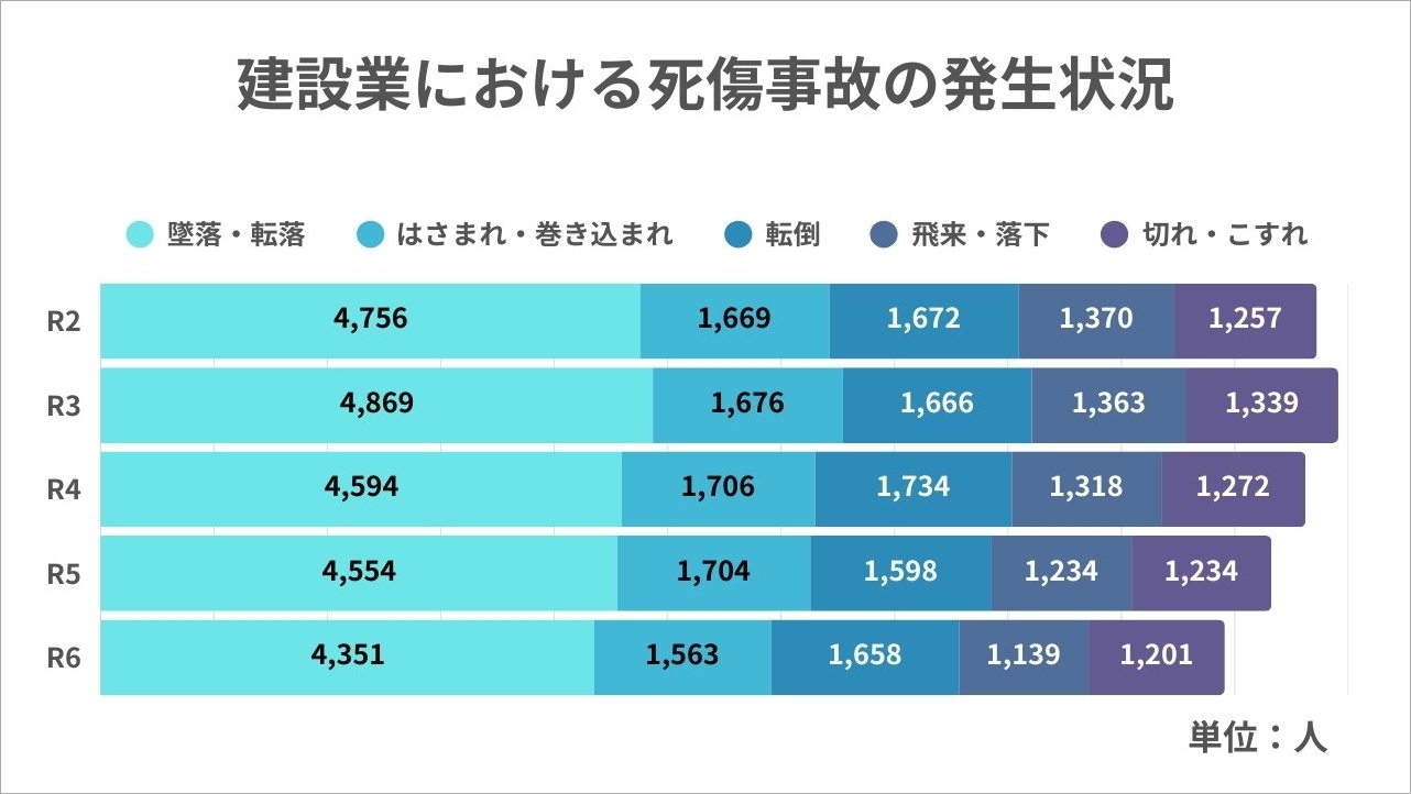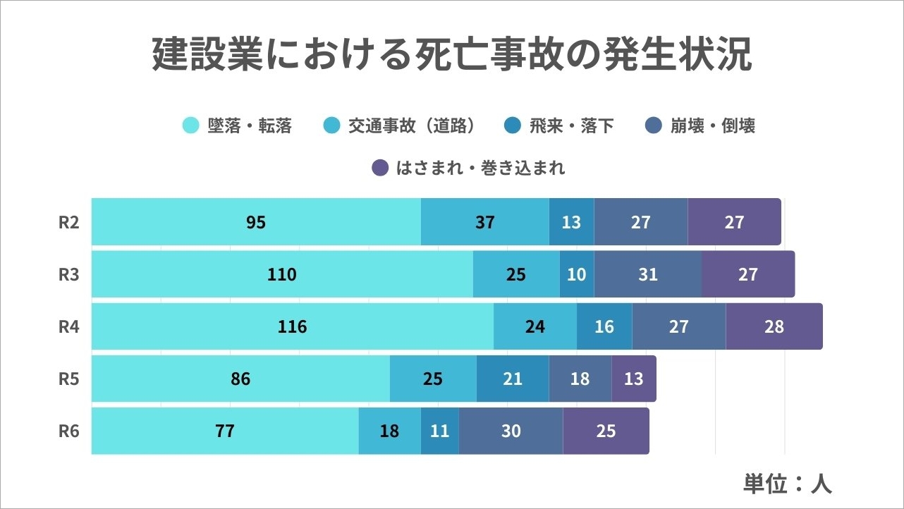 建設現場における労働災害は、全産業のなかで最も死亡災害の割合が高いです。「自分の現場は大丈夫だろうか」「悲惨な事故の話を聞いて不安になった」といった不安を一度は感じたことがあるのではないでしょうか。